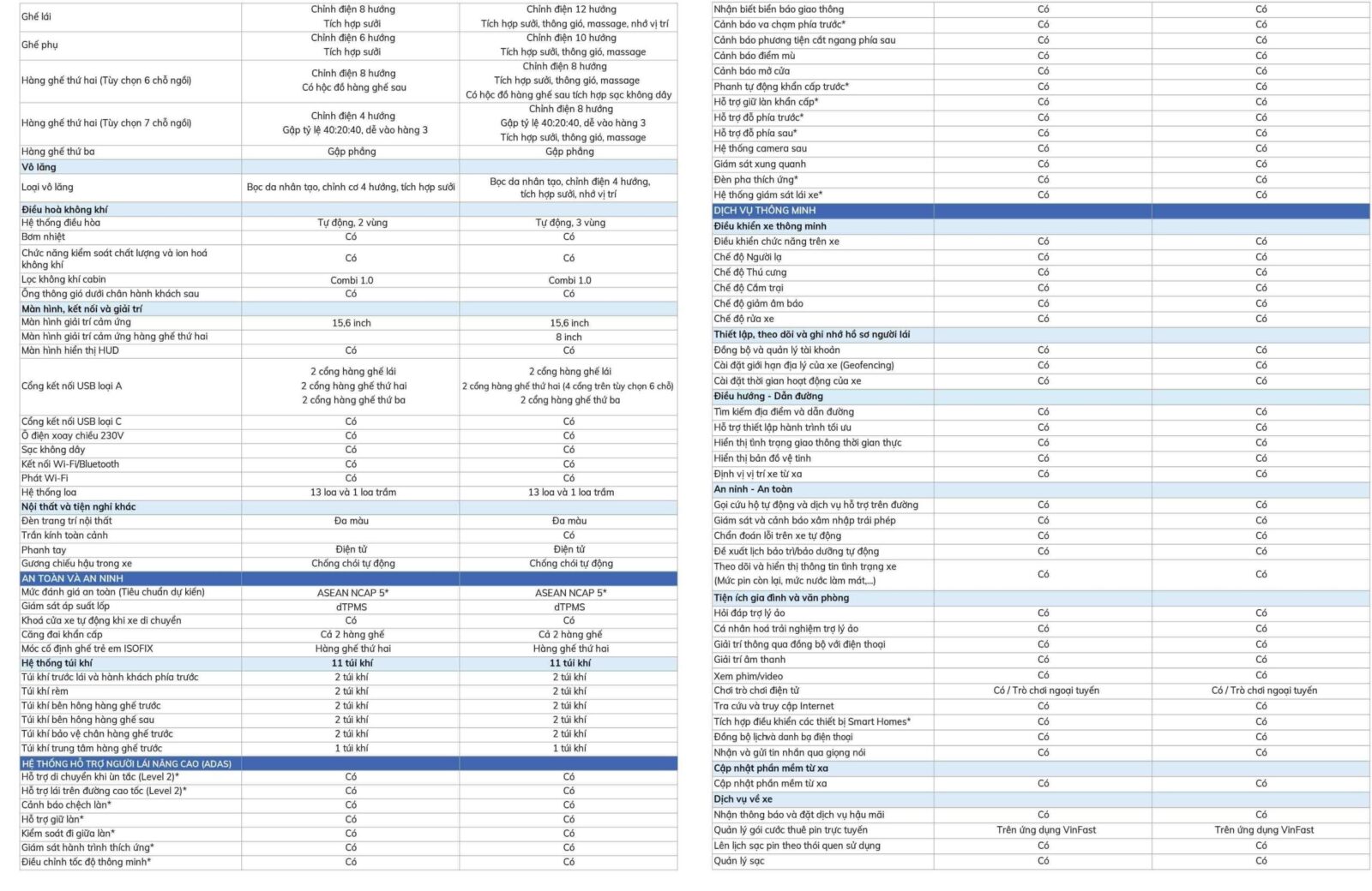 Tương tự VF8, VF9  cũng sở hữu tới 11 túi khí và hướng tới mục tiêu đạt tiêu chuẩn 5 sao ASEAN NCAP, 5 sao EURO NCAP và 5 sao NHTSA. Danh sách an toàn cụ thể của VF9 sẽ được công bố trong thời gian tới, trước mắt mẫu SUV này gây ấn tượng với nhiều công nghệ hỗ trợ lái nổi bật như: